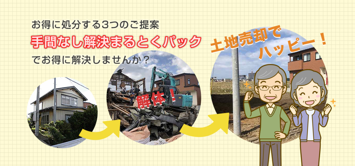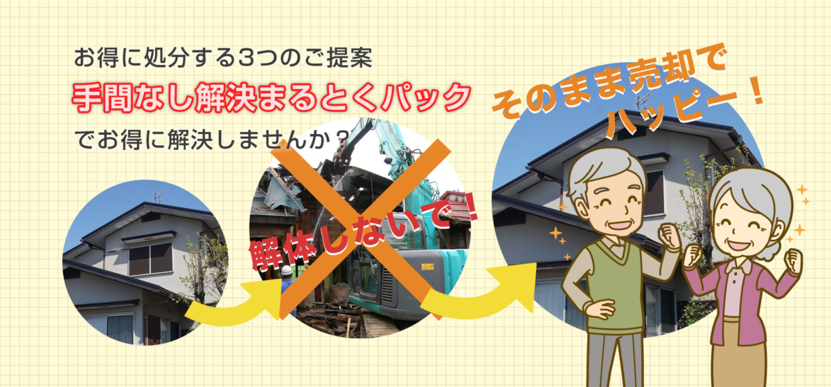 - 解体工事後の土地を販売して、売れたお金で解体費が賄い実質出費をゼロにします。